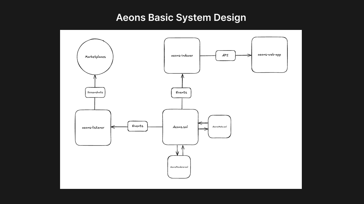 I got to flex my full stack muscles on Aeons. It’s a somewhat-complex system for an NFT project, needing a web app, indexer and bot to execute periodic blockchain transactions. I built these parts and wrote the smart contract suite. Traf handled the art direction, UI design and front end development masterfully.